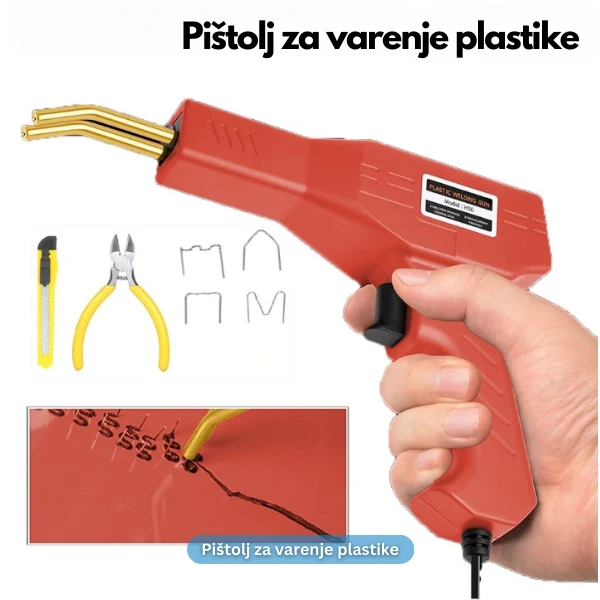 Ovaj pištolj zagreva metalne spajalice i dubinski ih vari u polomljenu plastiku stvarajući neraskidivu vezu. Lako se koristi, pa ceo posao možete obaviti sami.